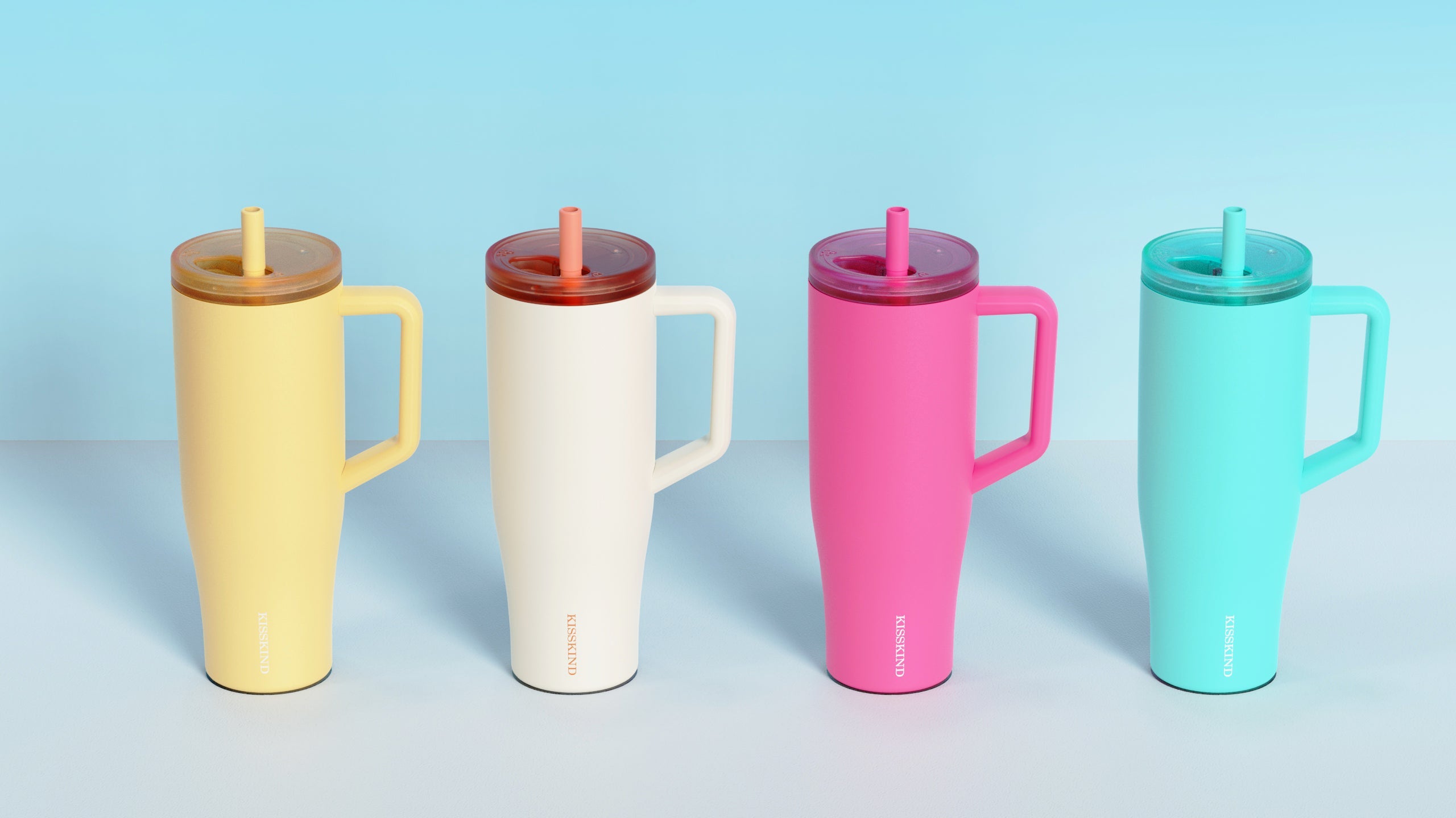 Yes. Kisskind offers matte and glossy black options with leak-proof lids and straw compatibility.